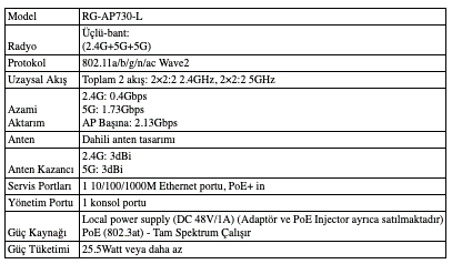Ruijie RG-AP730-L, benzersiz Wave 2 üçlü bant tasarımı ile yüksek yoğunluklu kullanıcı içeren küçük ölçekli işletmeler için optimize edilmiş olup, 768 kullanıcıya kadar sıkıntısız ve yüksek performans sağlar.